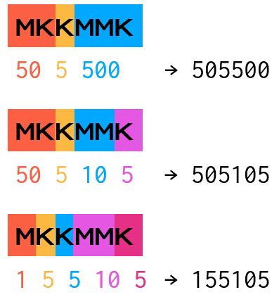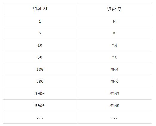 K를 만나는 순간은 바로 5를 적어야 가장 작은 수가 된다. (MK -> 50 or 15)