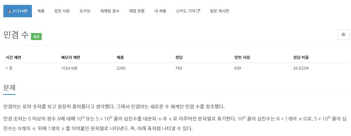 C++ / 백준 / 21314 / 민겸 수
