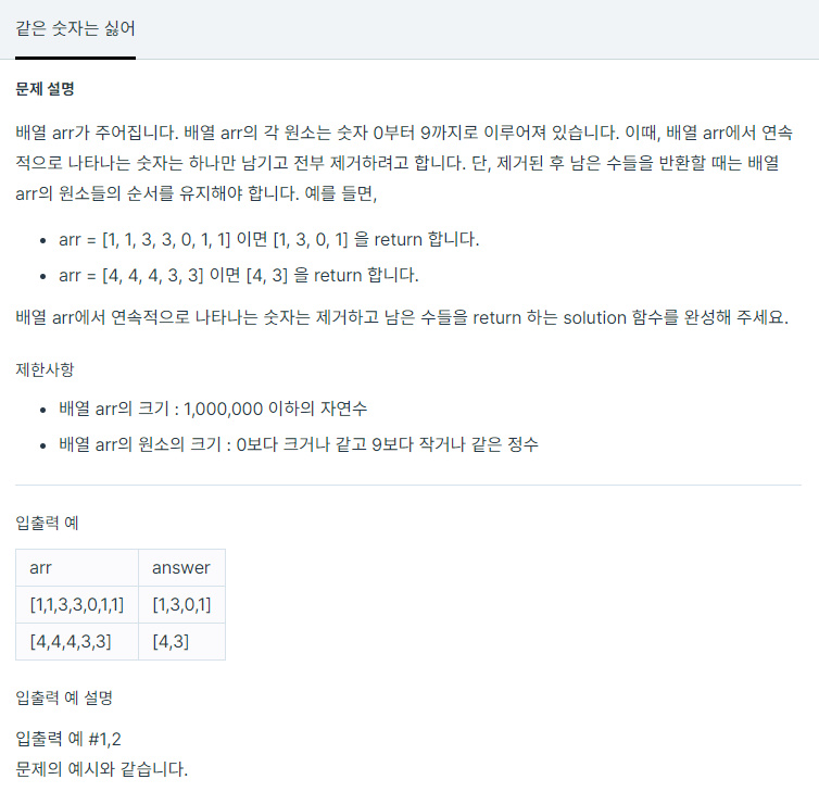 https://programmers.co.kr/learn/courses/30/lessons/12906